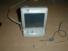 An electronic apex locator is an electronic device used in endodontics to determine the position of the apical constriction and thus determine the length of the root canal space. The apex of the root has a specific resistance to electrical current, and this is measured using a pair of electrodes typically hooked into the lip and attached to an endodontic file.