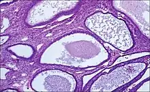 - ↑ Skov, B. G.; Broholm, H; Engel, U; Franzmann, M. B.; Nielsen, A. L.; Lauritzen, A. F.; Skov, T (1997). "Comparison of the reproducibility of the WHO classifications of 1975 and 1994 of endometrial hyperplasia". International Journal of Gynecological Pathology. 16 (1): 33–7. doi:10.1097/00004347-199701000-00006. PMID 8986530. S2CID 26446736.