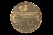 | Sinorhizobium meliloti strain Rm1021 on an agar plate. | |