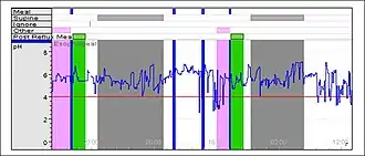 - ↑ Ayazi S, Lipham JC, Portale G, et al. (January 2009). "Bravo catheter-free pH monitoring: normal values, concordance, optimal diagnostic thresholds, and accuracy". Clin. Gastroenterol. Hepatol. 7 (1): 60–7. doi:10.1016/j.cgh.2008.08.020. PMID 18976965.