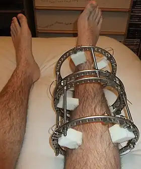 ![]() An Ilizarov apparatus is a type of external fixation used to treat limb deformities. | |