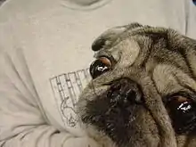 Exophthalmos is commonly found in dogs. It is seen in brachycephalic (short-nosed) dog breeds because of the shallow orbit. It can lead to keratitis secondary to exposure of the cornea. Exophthalmos is commonly seen in the pug, Boston terrier, Pekingese, and shih tzu. It is a common result of head trauma and pressure exerted on the front of the neck too hard in dogs. In cats, eye proptosis is uncommon and is often accompanied by facial fractures.[6]