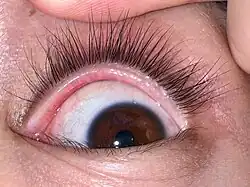 The upper eyelid crease is a common variation between people of White and East Asian ethnicities.[9] Westerners commonly perceive the East Asian upper eyelid as a "single eyelid".[9] However, East Asian eyelids are divided into three types – single, low, and double – based on the presence or position of the lid crease.[10] Jeong Sang-ki et al. of Chonnam University, Kwangju, Korea, in a study using both Asian and White cadavers as well as four healthy young Korean men, said that "Asian eyelids" have more fat in them than those of White people.[9] Single/double eyelids are polygenic traits.[11]
