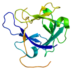 - ↑ Nishimura T, Utsunomiya Y, Hoshikawa M, Ohuchi H, Itoh N (1999). "Structure and expression of a novel human FGF, FGF-19, expressed in the fetal brain". Biochim. Biophys. Acta. 1444 (1): 148–51. doi:10.1016/S0167-4781(98)00255-3. PMID 9931477.
