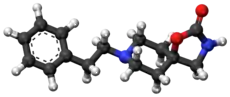 Fenspiride (INN, brand names Eurespal, Pneumorel and others) is an oxazolidinone spiro compound used as a drug in the treatment of certain respiratory diseases.[2] The pharmacotherapeutic classification is antitussives. In Russia it was approved for the treatment of acute and chronic inflammatory diseases of ENT organs (ear, nose, throat) and the respiratory tract (like rhinopharyngitis, laryngitis, tracheobronchitis, otitis and sinusitis), as well as for maintenance treatment of asthma.[3] Russia, Romania, France and other European countries withdrew fenspiride-based drugs from the market due to the risk of QT prolongation and torsades de pointes.[4] Fenspiride is known to have activity as an alpha-1 blocker, H1 antagonist, it also inhibits PDE3, PDE4, PDE5 with -logIC50 values of 3.44, 4.16, 3.8 respectively.[5]