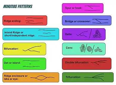 - ↑ "Fingerprints, detailed information". Forensic-medecine.info. Archived from the original on September 10, 2012. Retrieved September 14, 2012.