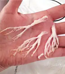 In a 2016 review, Dr. Jack Rychik, head of the Single Ventricle Survivorship Program at Children's Hospital of Philadelphia summarized the long-term consequences of Fontan circulation as an "indolent and progressive state of heart failure" with predictable long-term consequences on several organ systems.[15] Chronic venous hypertension from the stasis and lowered cardiac output are assumed to be at the root of lymphatic complications such as chylothorax, protein losing enteropathy and plastic bronchitis. These complications may occur in the immediate post-operative period as well as in the medium and long term. New interventional and surgical strategies have been investigated to relieve the lymphatic complications associated with the Fontan circulation.[16] Concerns about damage to the liver have emerged more recently, as the Fontan circulation produces congestion and lymphedema in this organ. This can lead towards progressive hepatic fibrosis and other complications of Fontan-Associated Liver Disease.[17] Screening protocols and treatment standards are emerging in the light of these discoveries.[15]