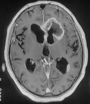 Causes may include genetics, malformed areas of brain, brain tumors, and injury.[2] They often only occur while the person is sleeping.[5][6] They arise from the frontal lobe of the brain.[2] Diagnosis may be based on symptoms.[2] In around 66% of cases MRI finds abnormalities, while an EEG often adds little.[2] Positron emission tomography (PET) or single photon emission CT (SPECT) may also help localize the area affected.[3] Other conditions that may appear similar include psychogenic non-epileptic seizures (PNES), and sleep disorders.[1][3]