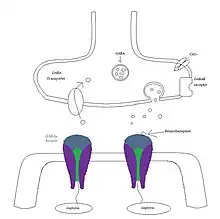 Synaptic action of benzodiazepines: GABAA receptors located at synapses are activated when they are exposed to high concentration of GABA. Benzodiazepines enhance the receptor affinity for GABA by increasing the decay of spontaneous miniature inhibitory postsynaptic currents (mIPSC).[12][13]