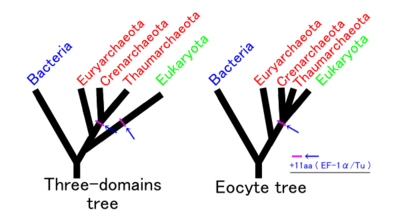 - ↑ Lake, J.A.; Henderson, E.; Oakes, M. (Clark, M.W.) (1984). "Eocytes: A new ribosome structure indicates a kingdom with a close relationship to eukaryotes". PNAS. 81 (12): 3786–3790. Bibcode:1984PNAS...81.3786L. doi:10.1073/pnas.81.12.3786. PMC 345305. PMID 6587394.