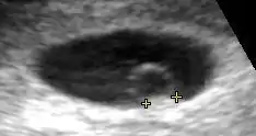 - ↑ Rodgers, Shuchi K.; Chang, Crystal; DeBardeleben, John T.; Horrow, Mindy M. (1 November 2015). "Normal and Abnormal US Findings in Early First-Trimester Pregnancy: Review of the Society of Radiologists in Ultrasound 2012 Consensus Panel Recommendations". RadioGraphics. 35 (7): 2135–2148. doi:10.1148/rg.2015150092. PMID 26562242. Retrieved 2 October 2021.