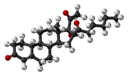 Gestonorone caproate, also known as norhydroxyprogesterone caproate, 17α-hydroxy-19-norprogesterone 17α-hexanoate, or 17α-hydroxy-19-norpregn-4-ene-3,20-dione 17α-hexanoate, is a synthetic norpregnane steroid and a derivative of progesterone.[63][16] It is specifically a combined derivative of 17α-hydroxyprogesterone and 19-norprogesterone, or of gestronol (17α-hydroxy-19-norprogesterone), with a hexanoate (caproate) ester at the C17α position.[63][16] Analogues and derivatives of gestonorone caproate include algestone acetophenide (dihydroxyprogesterone acetophenide), demegestone, nomegestrol acetate, norgestomet, and segesterone acetate, as well as 18-methylsegesterone acetate and the caproate esters chlormadinone caproate, hydroxyprogesterone caproate, medroxyprogesterone caproate, megestrol caproate, and methenmadinone caproate.[63][16]