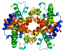 - ↑ Higgs DR, Vickers MA, Wilkie AO, Pretorius IM, Jarman AP, Weatherall DJ (May 1989). "A review of the molecular genetics of the human alpha-globin gene cluster". Blood. 73 (5): 1081–104. doi:10.1182/blood.V73.5.1081.1081. PMID 2649166.