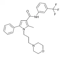 HC-067047 is a drug which acts as a potent and selective antagonist for the TRPV4 receptor. It has been used to investigate the role of TRPV4 receptors in a number of areas, such as regulation of blood pressure, bladder function and some forms of pain, as well as neurological functions.[1][2][3][4][5][6][7]