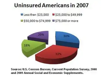 - 1 2 "UNDERSTANDING THE UNINSURED: TAILORING POLICY SOLUTIONS FOR DIFFERENT SUBPOPULATIONS," Archived March 14, 2018, at the Wayback Machine Issue Brief, NIHCM Foundation, April 2008