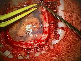 A craniotomy is a surgical operation in which a bone flap is temporarily removed from the skull to access the brain. Craniotomies are often critical operations, performed on patients who are suffering from brain lesions, such as tumors, blood clots, removal of foreign bodies such as bullets, or traumatic brain injury (TBI), and can also allow doctors to surgically implant devices, such as deep brain stimulators for the treatment of Parkinson's disease, epilepsy, and cerebellar tremor. The procedure is also used in epilepsy surgery to remove the parts of the brain that are causing epilepsy.