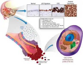 - ↑ Kurman, R. J. (2013-12-01). "Origin and molecular pathogenesis of ovarian high-grade serous carcinoma". Annals of Oncology. 24 Suppl 10: x16–21. doi:10.1093/annonc/mdt463. ISSN 1569-8041. PMID 24265397.