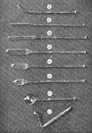 As with radium emanation, solutions of free radium salts were also placed in tubes; in this case, the tubes were made from platinum. In metal tubes, the radium could be employed in a number of ways: externally; to the interior of the body in places like the mouth, nose, esophagus, rectum and vagina; and into the substance of a tumor through incisions.[29]