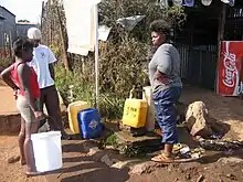 The WHO/UNICEF Joint Monitoring Programme for Water Supply and Sanitation reported that 663 million people did not have access to improved sources of drinking water and more than 2.4 billion people lacked access to basic sanitation services in 2015.[15] Access to clean water is a major problem for many parts of the world. Acceptable sources include "household connections, public standpipes, boreholes, protected dug wells, protected springs and rainwater collections."[16] Although 9 percent of the global population lacks access to water, there are "regions particularly delayed, such as Sub-Saharan Africa".[16] The UN further emphasizes that "about 1.5 million children under the age of five die each year and 443 million school days are lost because of water- and sanitation-related diseases."[17] In 2022, over 2 billion people, 25% of the world's population, lacked consistent access to clean drinking water.[18][19] 4.2 billion lacked access to safe sanitation services. [20][21][22]