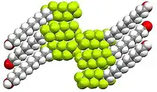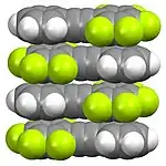 Packing in a crystal pentafluorotolan (C6F5CCC6H5), illustrating the donor-acceptor interactions between the fluorinated and nonfluorinated rings.[4]