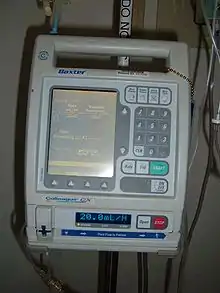 - ↑ Davis, S.; Blanchard, C.; Lewis, J. (26 October 2018). "Implementing Smart Pumps to Enhance Patient Safety". Hospital Pharmacy. 54 (4): 217–219. doi:10.1177/0018578718809252. PMC 6628554. PMID 31320768.