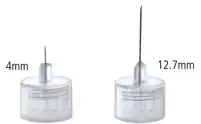 Today, pen needles are manufactured at shorter needle lengths than required for typical vial and syringe administration, which decreases the pain associated with injection.[2] They are available in multiple lengths and gauge of needle, including 3.5mm, 4mm, 5mm, and 8mm lengths, and 31 through 34 gauge.[8] Over time, needles have also had bevels designed which decrease the force required to penetrate the skin, which decreases the pain associated with injection and may increase the acceptability of self-injection.[8] Furthermore, pen needles are designed for insertion at a 90-degree angle to the skin, as opposed to normal syringes which are designed to be injected at an angle. Pen needles generally do not require pinching of the skin for proper administration, unlike historically used syringes.[9] Pen needles should be disposed of properly after each use, preferably in a purpose-made sharps container, to prevent injury from accidental contact after use.[9]