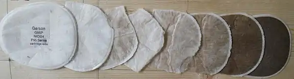 - ↑ Jung, Hyejung; Kim, Jongbo; Lee, Seungju; Lee, Jinho; Kim, Jooyoun; Tsai, Perngjy; Yoon, Chungsik (2014). "Comparison of Filtration Efficiency and Pressure Drop in Anti-Yellow Sand Masks, Quarantine Masks, Medical Masks, General Masks, and Handkerchiefs". Aerosol and Air Quality Research. 14 (3): 991–1002. doi:10.4209/aaqr.2013.06.0201.