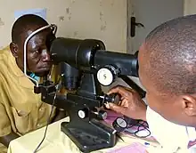 A keratometer, also known as an ophthalmometer, is a diagnostic instrument for measuring the curvature of the anterior surface of the cornea, particularly for assessing the extent and axis of astigmatism. It was invented by the German physiologist Hermann von Helmholtz in 1851, although an earlier model was developed in 1796 by Jesse Ramsden and Everard Home.