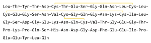 Lepirudin is a recombinant hirudin[1] derived from yeast cells. Lepirudin is almost identical to hirudin extracted from Hirudo medicinalis, having the amino acid sequence LTYTDCTESGQNLCLCEGSNVCGQGNKCILGSDGEKNQCVTGEGTPKPQSHNDGDFEEIPEEYLQ with disulfide bridges at Cys6-Cys14, Cys16-Cys28 and Cys22-Cys39, and differs from by the substitution of leucine for isoleucine at the N-terminal end of the molecule and the absence of a sulfate group on the tyrosine at position 63.