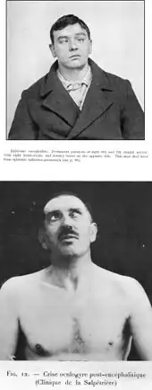 - ↑ Vilensky, J.A.; Gilman, S. (2010). "Introduction". In Vilensky, Joel A. (ed.). Encephalitis Lethargica: During and After the Epidemic. Oxford: Oxford University Press. pp. 3–7, esp. 6f. ISBN 978-0190452209. Retrieved 8 December 2015.
