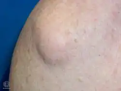 | Symptoms | Soft, movable, usually painless lump[1] |