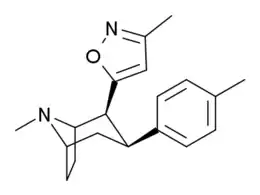 - ↑ Daum SJ, Martini CM, Kullnig RK, Clarke RL (May 1972). "Compounds affecting the central nervous system. I. Tropane-2 ,3 -diol derivatives. A reverse ester of cocaine". The Journal of Organic Chemistry. 37 (10): 1665–9. doi:10.1021/jo00975a045. PMID 5031343.