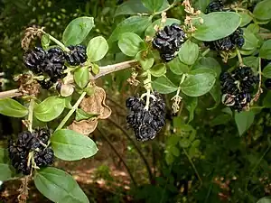 | Coriaria myrtifolia | redoul | A Mediterranean plant containing the toxin coriamyrtin, ingestion of which produces digestive, neurological, and respiratory problems. The poisonous fruits superficially resemble blackberries and may mistakenly be eaten as such. Can be fatal in children. | ![]() | |