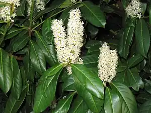 | Prunus spp. | cherry, peach, plum, apricot, almond, etc. | Rosaceae | Leaves and seeds contain amygdalin, a cyanogenic glycoside. Many other Prunus species, such as peach (Prunus persica), plum (Prunus domestica), almond (Prunus dulcis), and apricot (Prunus armeniaca), also possess poisonous parts. | ![]() |
