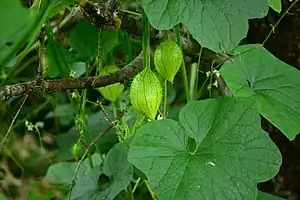 | Chondrodendron tomentosum | curare | Menispermaceae | It contains highly toxic alkaloids and is one of the sources of the arrow poison curare – specifically 'tube curare', the name of which is derived from the name of the medicinally valuable alkaloid tubocurarine.[75] | ![]() |
