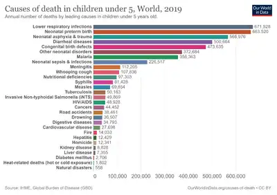 27. 1 2 GBD 2015 LRI Collaborators (November 2017). "Estimates of the global, regional, and national morbidity, mortality, and aetiologies of lower respiratory tract infections in 195 countries: a systematic analysis for the Global Burden of Disease Study 2015". The Lancet. Infectious Diseases. 17 (11): 1133–1161. doi:10.1016/S1473-3099(17)30396-1. PMC 5666185. PMID 28843578.