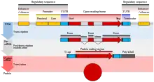 Untranslated regions (UTRs) are sections of the mRNA before the start codon and after the stop codon that are not translated, termed the five prime untranslated region (5' UTR) and three prime untranslated region (3' UTR), respectively. These regions are transcribed with the coding region and thus are exonic as they are present in the mature mRNA. Several roles in gene expression have been attributed to the untranslated regions, including mRNA stability, mRNA localization, and translational efficiency. The ability of a UTR to perform these functions depends on the sequence of the UTR and can differ between mRNAs. Genetic variants in 3' UTR have also been implicated in disease susceptibility because of the change in RNA structure and protein translation.[20]