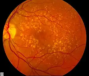 16. García-Layana A, Cabrera-López F, García-Arumí J, Arias-Barquet L, Ruiz-Moreno JM (October 2017). "Early and intermediate age-related macular degeneration: update and clinical review". Clinical Interventions in Aging. 12: 1579–1587. doi:10.2147/cia.s142685. PMC 5633280. PMID 29042759.