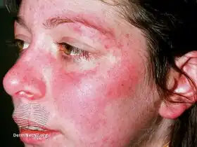 - ↑ Dreizen S (January 1991). "The butterfly rash and the malar flush. What diseases do these signs reflect?". Postgraduate Medicine. 89 (1): 225–8, 233–4. doi:10.1080/00325481.1991.11700800. PMID 1824645.
