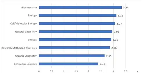 - ↑ "Ratings of the Importance of Topics in the Natural Sciences, Research Methods, Statistics, and Behavioral Sciences to Success in Medical School" (PDF).