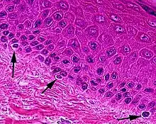 Micrograph of melanocytes in the epidermis