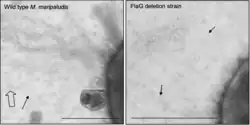 - 1 2 3 4 Jarrell KF, Stark M, Nair DB, Chong JP (June 2011). "Flagella and pili are both necessary for efficient attachment of Methanococcus maripaludis to surfaces". FEMS Microbiology Letters. 319 (1): 44–50. doi:10.1111/j.1574-6968.2011.02264.x. PMID 21410509. S2CID 36895781.