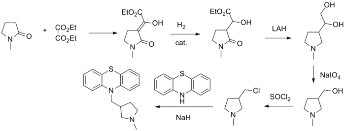 Methdilazine synthesis:[1] R. F. Feldkamp and Y. H. Wu; Mead Johnson & Company; U.S. patent 2,945,855 (1960).