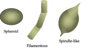 Cells can be preserved in the rock record because their cell walls are made of proteins which convert to the organic material kerogen as the cell breaks down after death. Kerogen is insoluble in mineral acids, bases, and organic solvents.[36] Over time, it is mineralised into graphite or graphite-like carbon, or degrades into oil and gas hydrocarbons.[37] There are three main types of cell morphologies. Though there is no established range of sizes for each type, spheroid microfossils can be as small as about 8 micrometres, filamentous microfossils have diameters typically less than 5 micrometres and have a length that can range from tens of micrometres to 100 micrometres, and spindle-like microfossils can be as long as 50 micrometres.[38][39]