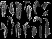 - ↑ Jones, David; Evans, Alistair R.; Siu, Karen K. W.; Rayfield, Emily J.; Donoghue, Philip C. J. (2012). "The sharpest tools in the box? Quantitative analysis of conodont element functional morphology". Proceedings of the Royal Society B: Biological Sciences. 279 (1739): 2849–2854. doi:10.1098/rspb.2012.0147. PMC 3367778. PMID 22418253.