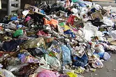 The composition of municipal solid waste varies greatly from municipality to municipality,[1] and it changes significantly with time. In municipalities which have a well-developed waste recycling system, the waste stream mainly consists of intractable wastes such as plastic film and non-recyclable packaging materials. At the start of the 20th century, the majority of domestic waste (53%) in the UK consisted of coal ash from open fires.[2] In developed areas without significant recycling activity it predominantly includes food wastes, market wastes, yard wastes, plastic containers and product packaging materials, and other miscellaneous solid wastes from residential, commercial, institutional, and industrial sources.[3] Most definitions of municipal solid waste do not include industrial wastes, agricultural wastes, medical waste, radioactive waste or sewage sludge.[4] Waste collection is performed by the municipality within a given area. The term residual waste relates to waste left from household sources containing materials that have not been separated out or sent for processing.[5] Waste can be classified in several ways, but the following list represents a typical classification: