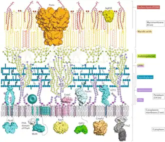 7. 1 2 Dulberger CL, Rubin EJ, Boutte CC (January 2020). "The mycobacterial cell envelope - a moving target". Nature Reviews. Microbiology. 18 (1): 47–59. doi:10.1038/s41579-019-0273-7. PMID 31728063. S2CID 208020338.