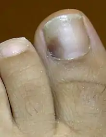 A nail disease or onychosis is a disease or deformity of the nail.[1] The disorder of a nail may be localised to the nail or provide a clue to another ongoing disease.[2]