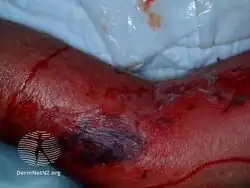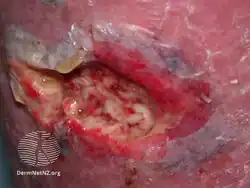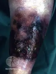 | Other names: Flesh-eating bacteria, flesh-eating bacteria syndrome,[1] necrotizing soft tissue infection (NSTI),[2] fasciitis necroticans | |