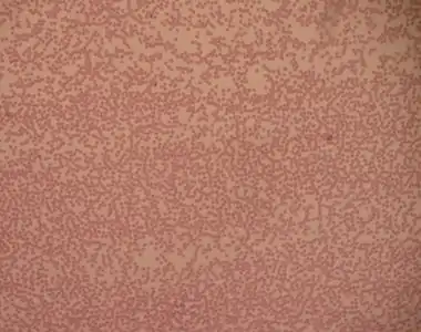 | Blood film with a striking absence of neutrophils, leaving only red blood cells and platelets | |